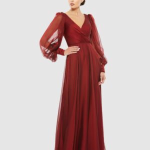 Chiffon Bishop Sleeve Surplice Dress (Plus)
