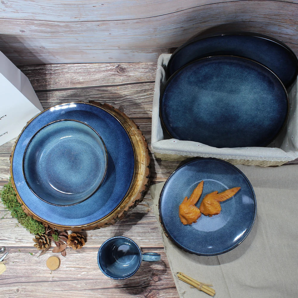Wholesale Ceramic Red Blue Plate Tableware Stoneware Dinner Set Dinnerware Sets