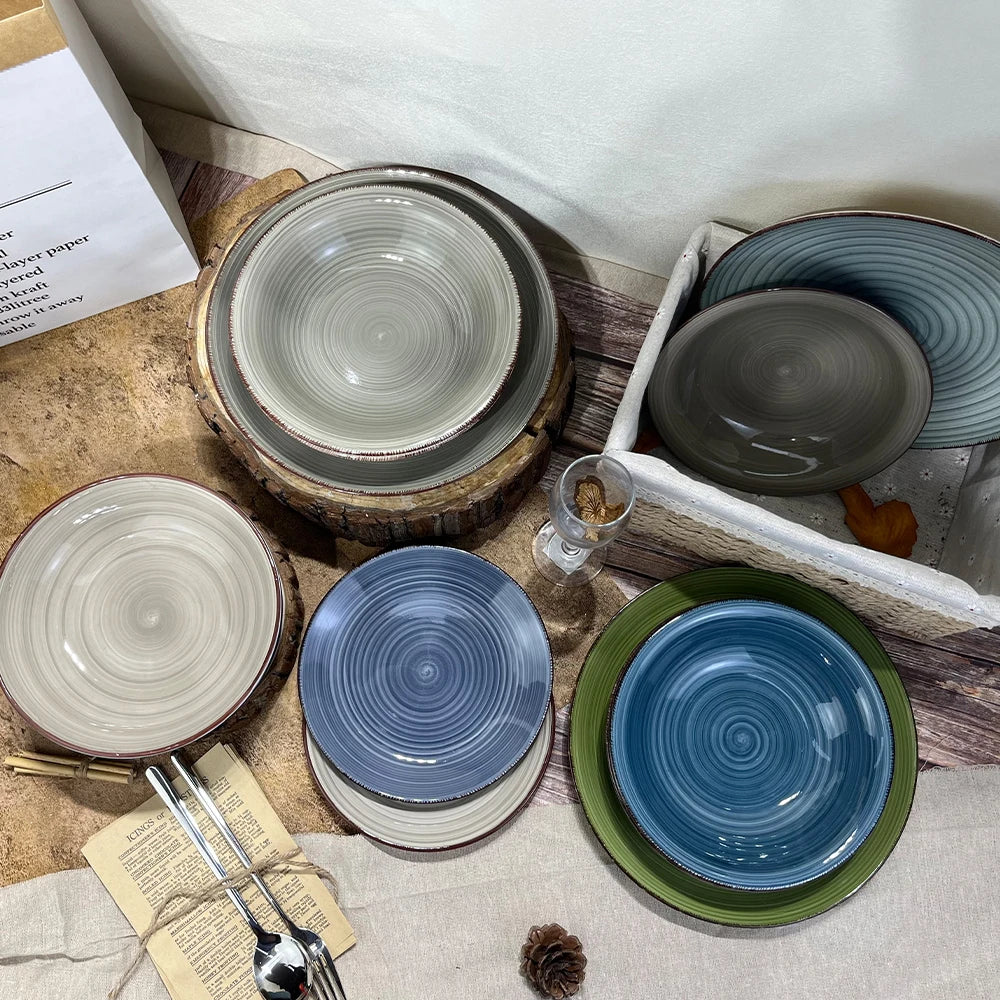 Wholesale Ceramic Red Blue Plate Tableware Stoneware Dinner Set Dinnerware Sets