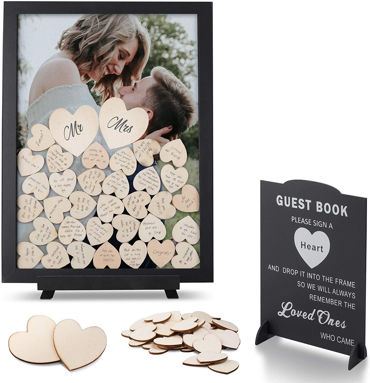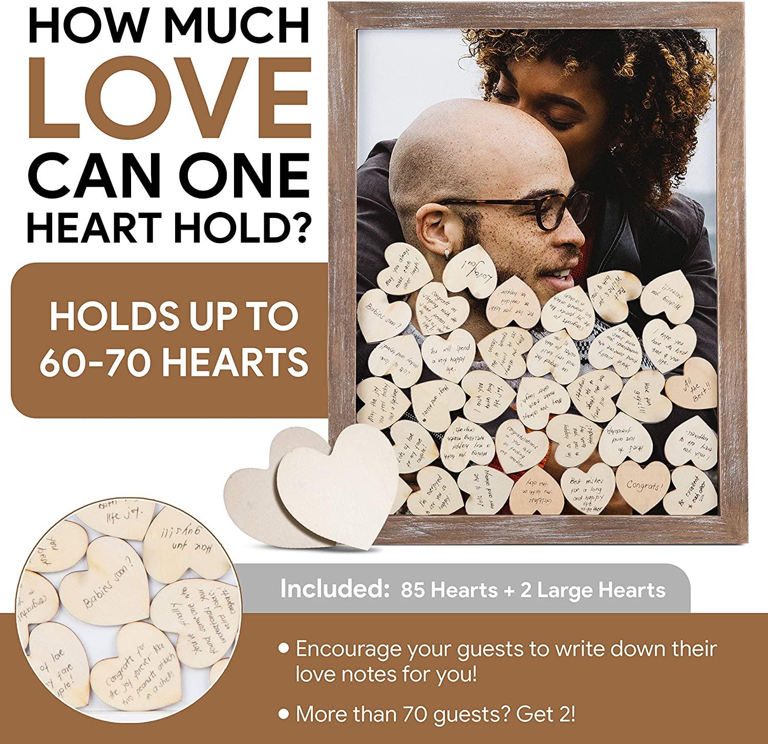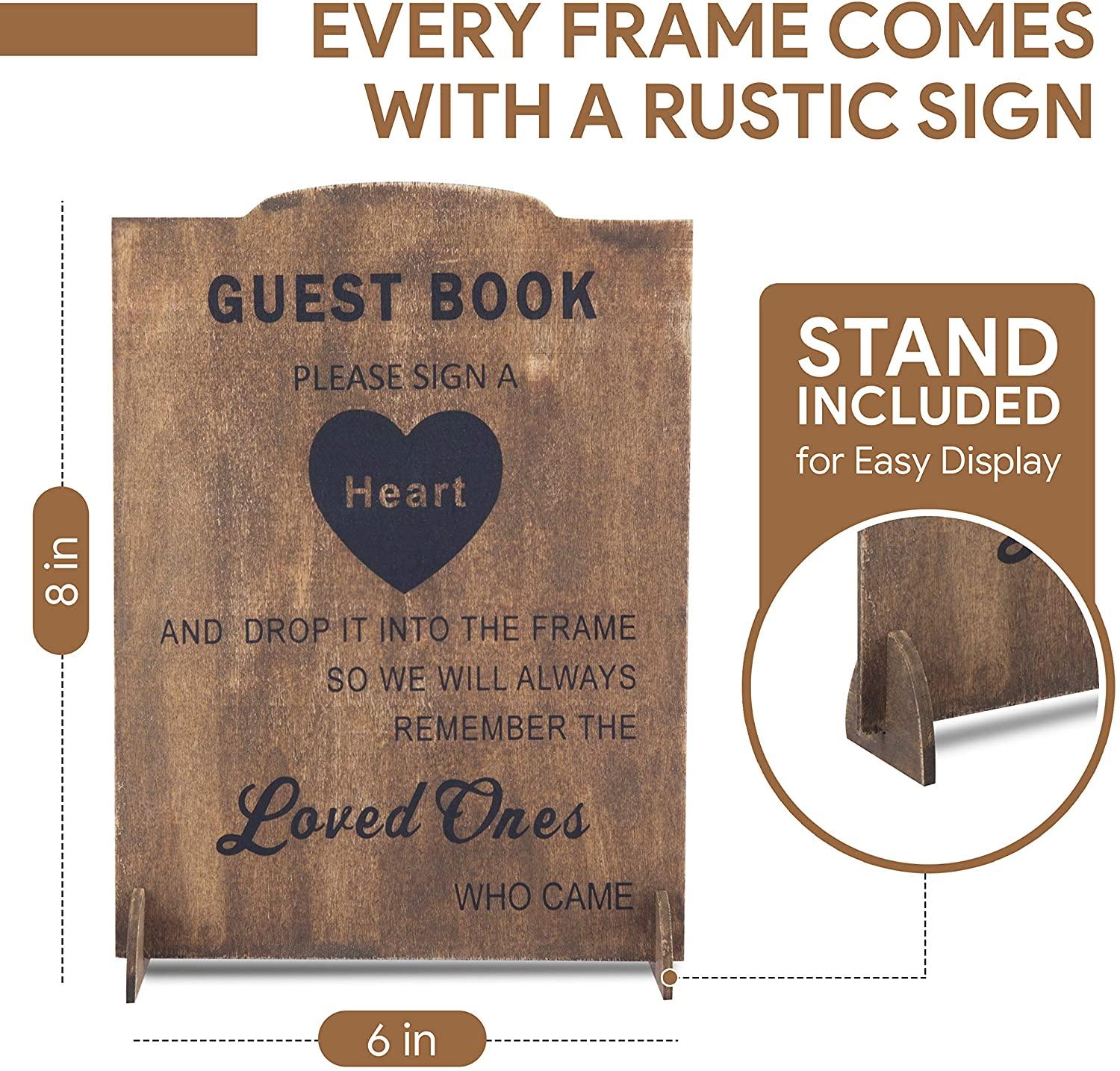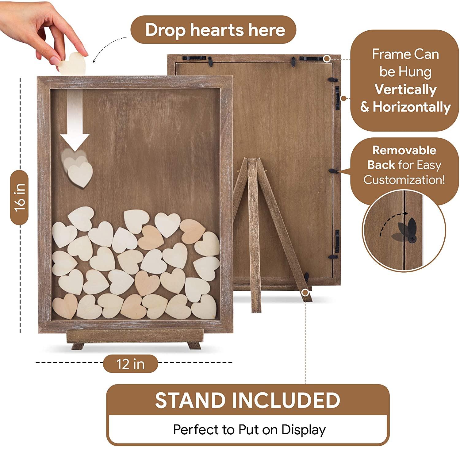 ALTERNATIVE WEDDING GUEST BOOK – Your guestbook alternative should be special and personalized; it’s a unique rustic wedding decor you’ll want to cherish and keep forever. GUESTBOOK FOR WEDDING – This dropbox guest book fits all country wedding decorations! You can also use it as a baby shower guest book, a guest book for wedding shower, and to celebrate any other special occasion! WEDDING SIGN IN GUEST BOOK – It comes with 85 1.5″ x 1.5″ and 2 3″ x 3″ laser-cut hearts for your guests to sign. The rustic wedding guest book measures 16″ x 12″ made with acrylic glass and an instructions guest book sign. CUSTOMIZE THE GUEST BOOK FOR WEDDING CELEBRATIONS – The back of the wedding shadow box can be removed to customize and match your wedding decorations rustic theme. HANG THE ALTERNATIVE GUESTBOOK – Use the stand to display the rustic wooden guest book with hearts on the table or hang it on the wall in your home.