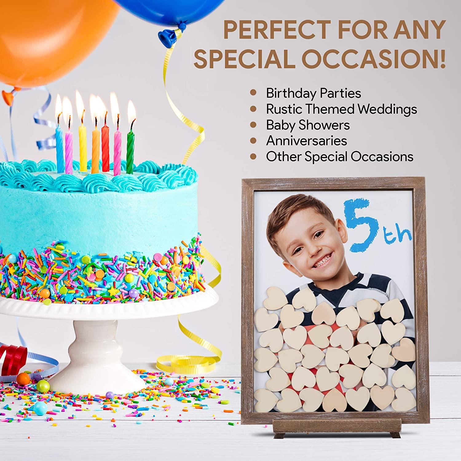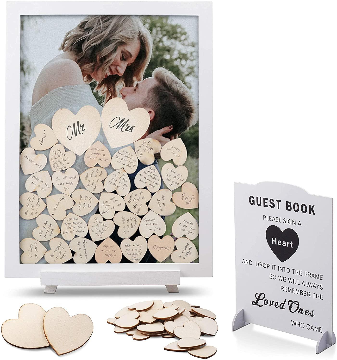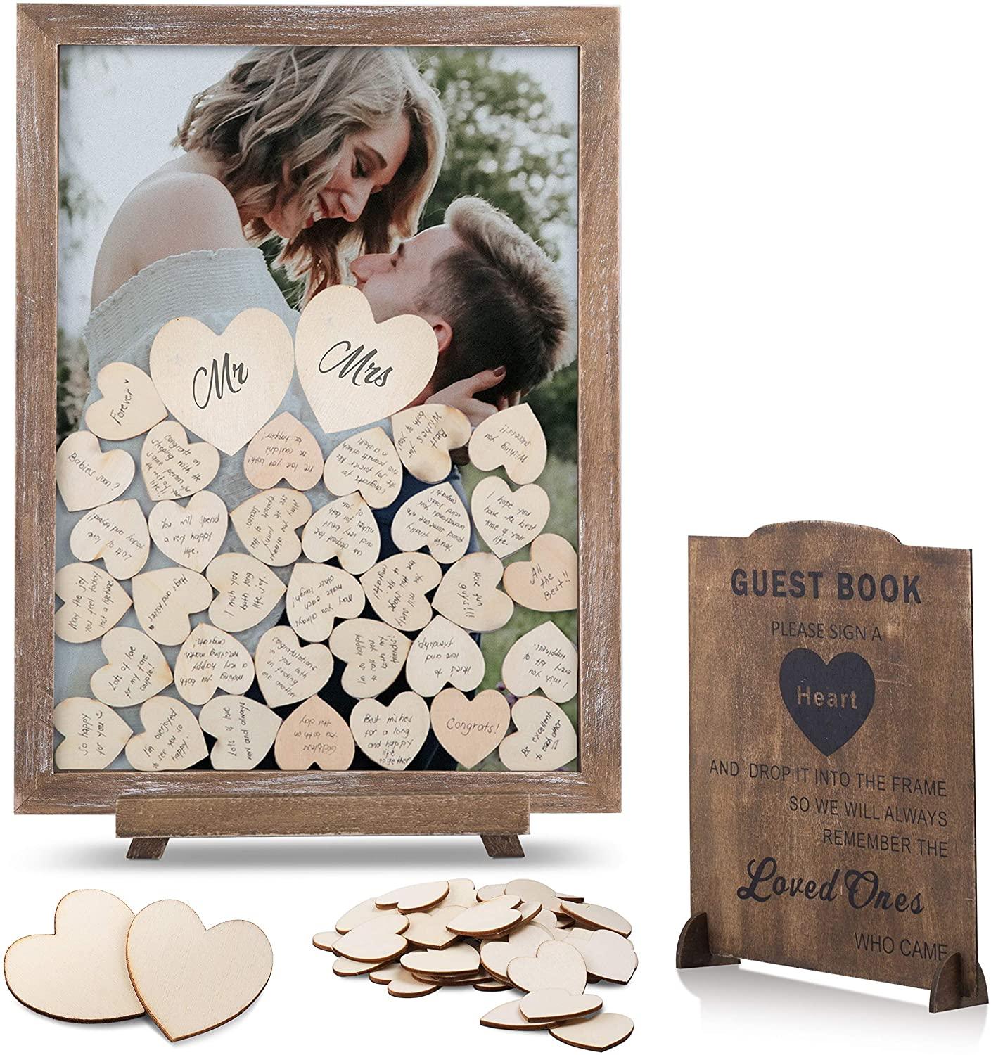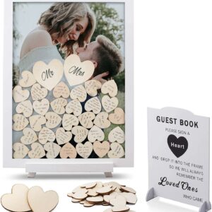 ALTERNATIVE WEDDING GUEST BOOK – Your guestbook alternative should be special and personalized; it’s a unique rustic wedding decor you’ll want to cherish and keep forever. GUESTBOOK FOR WEDDING – This dropbox guest book fits all country wedding decorations! You can also use it as a baby shower guest book, a guest book for wedding shower, and to celebrate any other special occasion! WEDDING SIGN IN GUEST BOOK – It comes with 85 1.5″ x 1.5″ and 2 3″ x 3″ laser-cut hearts for your guests to sign. The rustic wedding guest book measures 16″ x 12″ made with acrylic glass and an instructions guest book sign. CUSTOMIZE THE GUEST BOOK FOR WEDDING CELEBRATIONS – The back of the wedding shadow box can be removed to customize and match your wedding decorations rustic theme. HANG THE ALTERNATIVE GUESTBOOK – Use the stand to display the rustic wooden guest book with hearts on the table or hang it on the wall in your home.