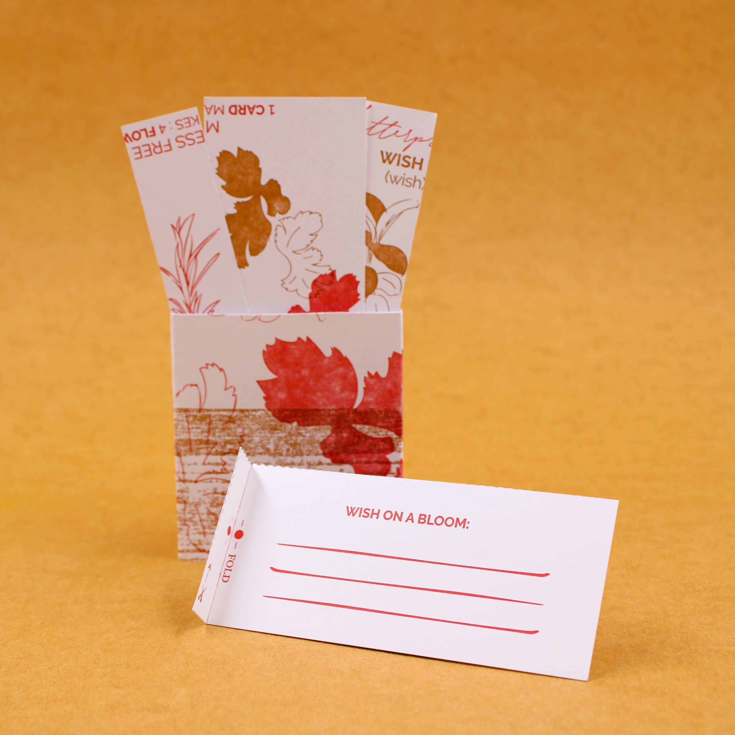 Create a freshly pressed vase of paper flowers with only your hands, a pair of scissors, and our letterpress printed Wish Bloom bouquet. This mess-free, vintage-inspired papercraft toy is fun and easy to put togetherDsimply follow the printed instructions to create a vase and four pretty paper flowers.